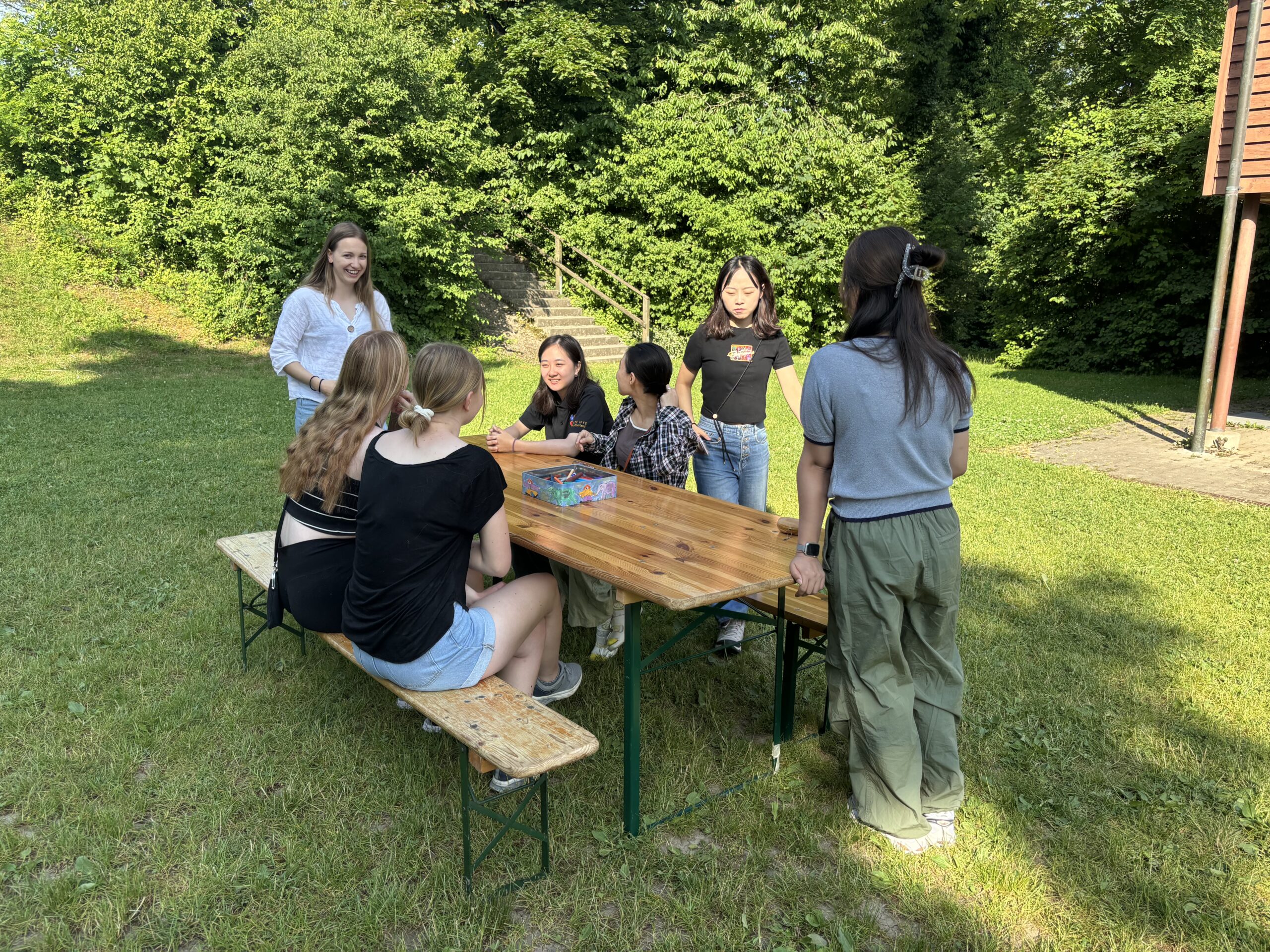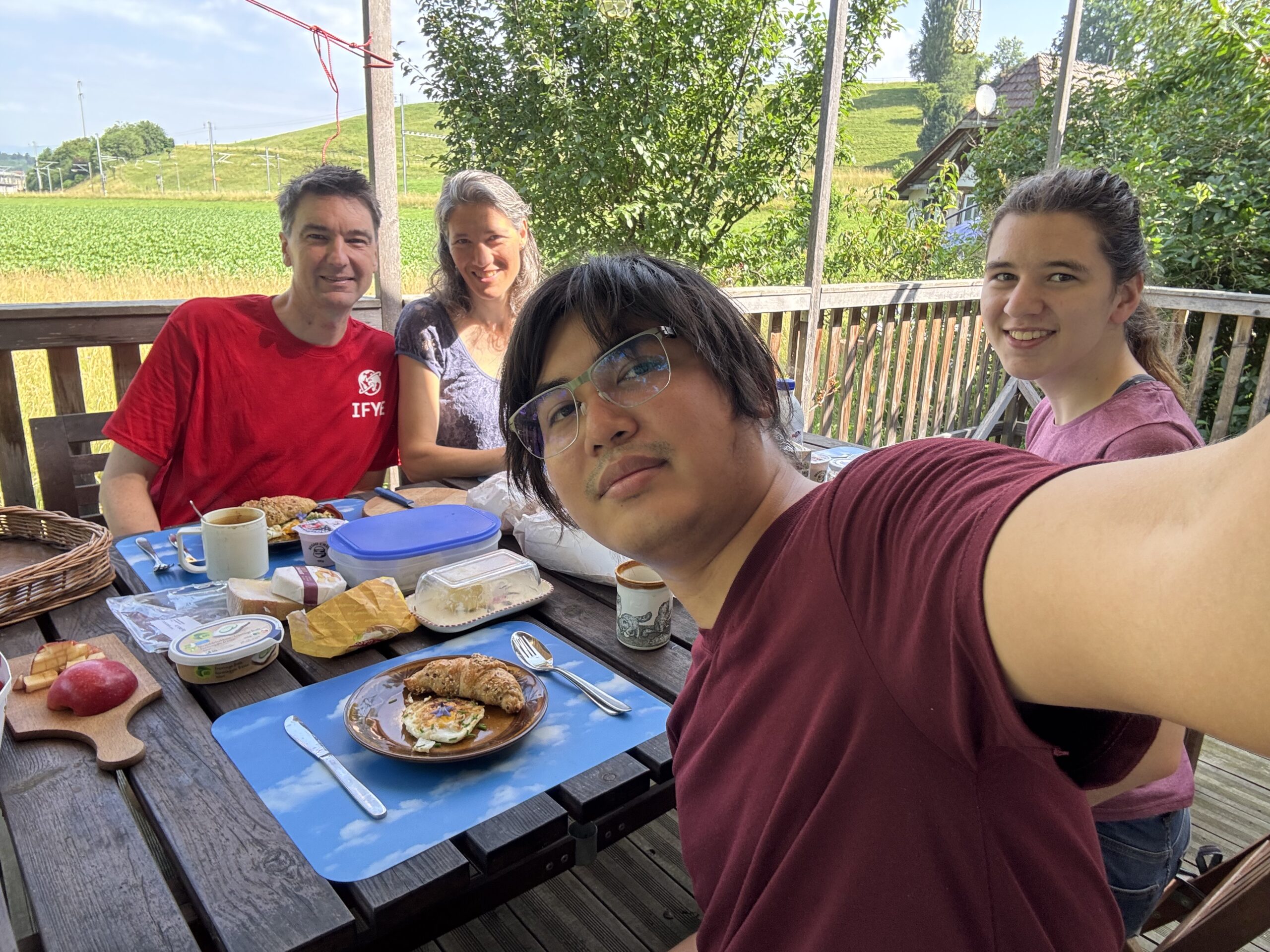 หลังจากอยู่ได้ประมาณหนึ่งสัปดาห์ผมก็ต้องเดินทางไปเข้าค่าย Incoming IFYE 2025 ที่เมือง Wallisellen โดยมีตัวแทนจากหลายประเทศทั้ง Carol / Hazel / Vivian จากไต้หวัน Kim Hyo-Jeong จากเกาหลี Emilie / Anni จากฟินแลนด์ Isabelle จากสวีเดน และ Mathew จากออสเตรเลีย โดยกิจกรรมแรกที่ได้ทำด้วยกันคือการละลายพฤติกรรมและทำความรู้จัก เดินป่าใกล้แคมป์ที่พักและนำเสนอประเทศของตัวเองให้คนอื่นได้รู้จักมากยิ่งขึ้น