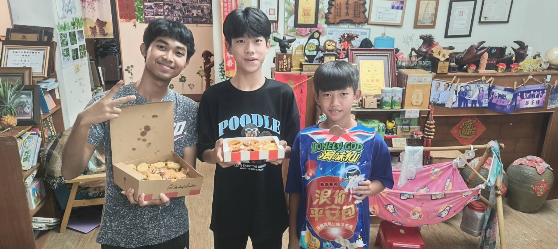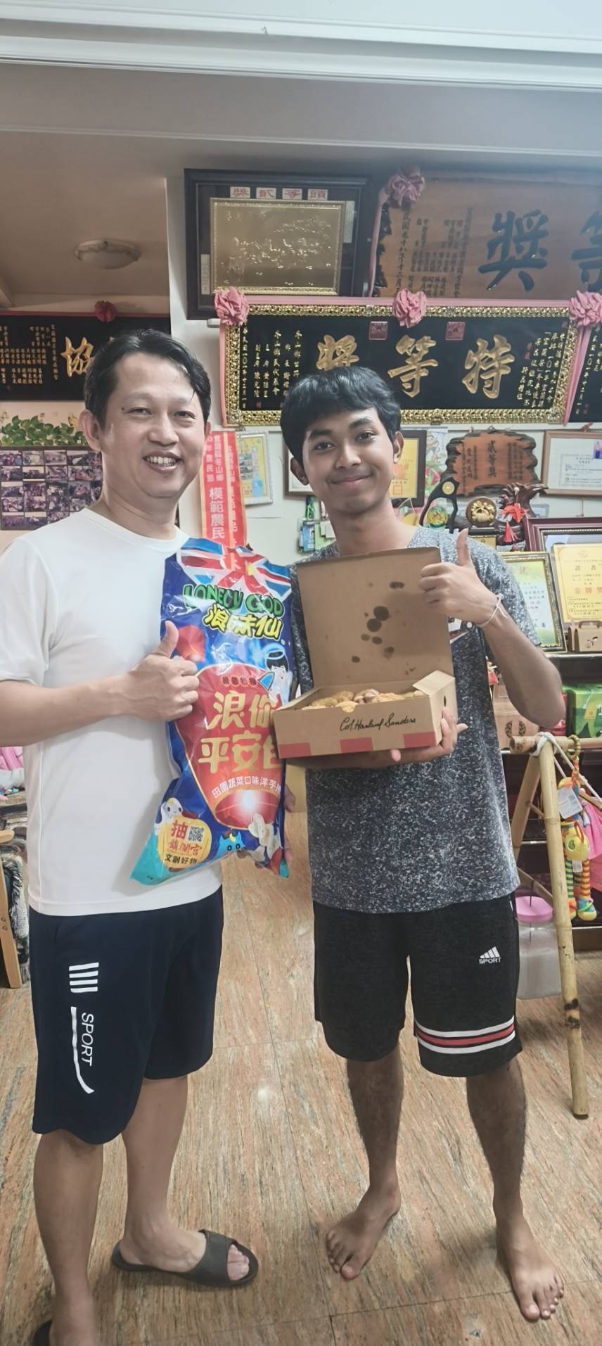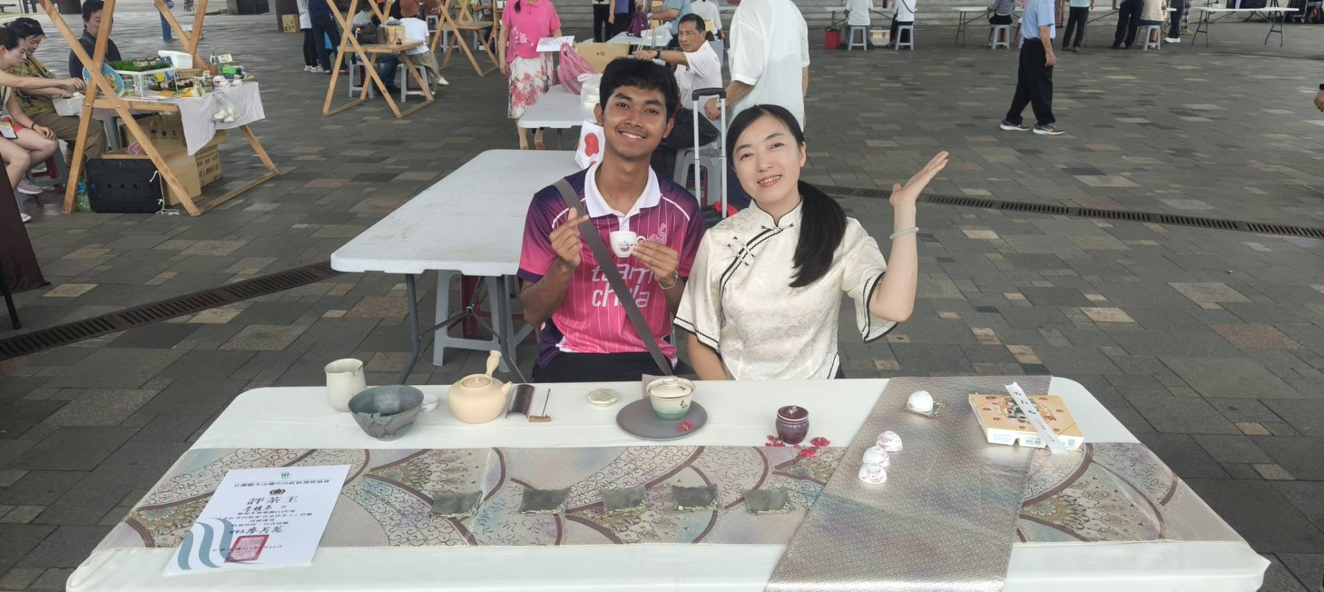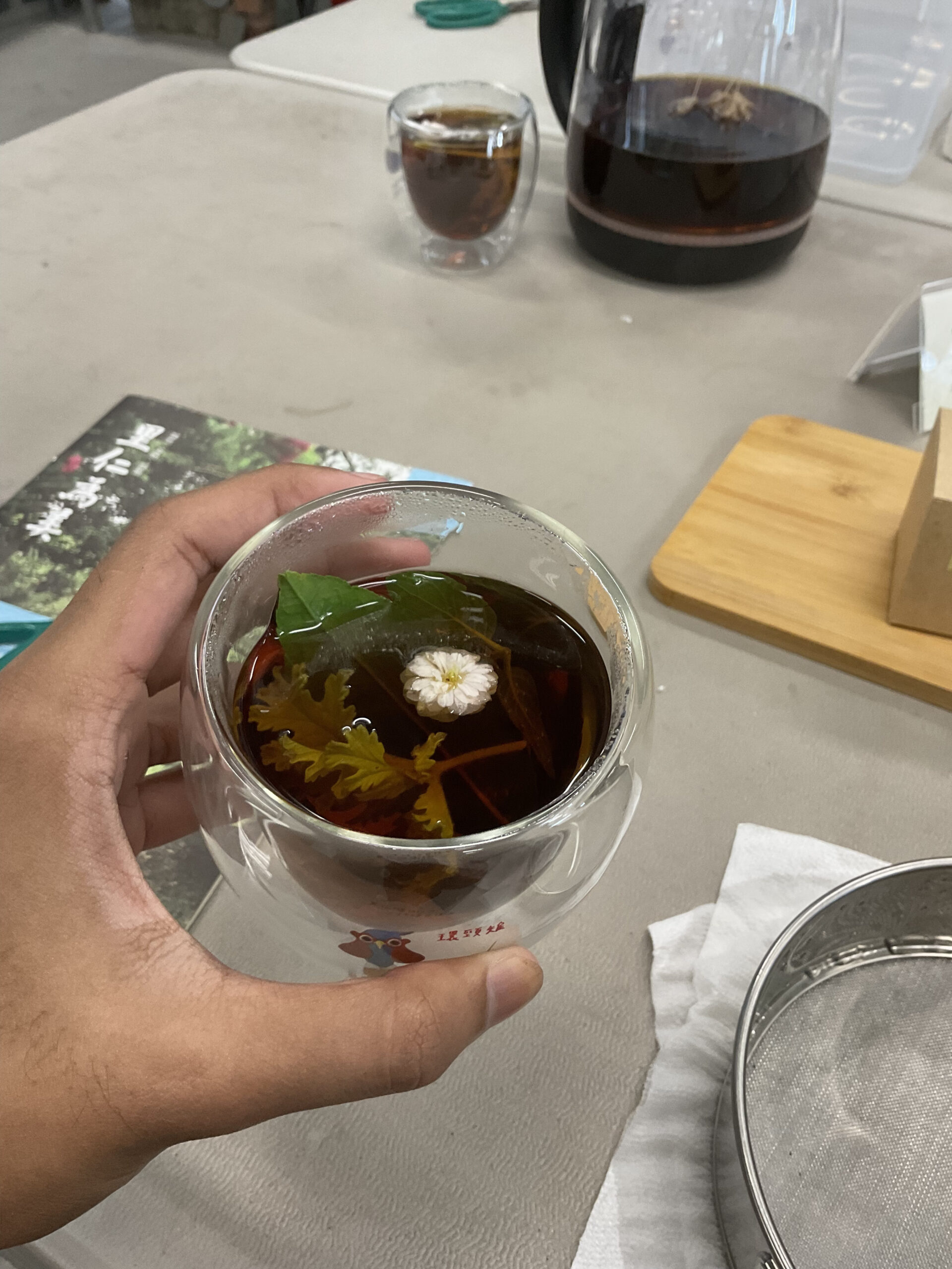 เช้าวันนี้ผมได้ไปดูงานชาที่เมืองLuodong ซึ่งในงานมีชาหลากหลายรูปแบบให้ได้ลิ้มลองมีนิทรรศการและของในท้องถิ่นมาเปิดขายอีกด้วย ซึ่งงานนี้น่าทึ่งมากๆเพราะเราสามารถทดลองดื่มชายี่สิบกว่าชนิดและสามารถเลือกกลับบ้านได้ด้วย จากนั้นเราก็ไปที่Chung Hsiang Cultural and Creative Parkเพื่อไปชมผลงานของKeboลูกของโฮสนั่นเอง ซึ่งบอกได้เลยว่าสวยมากๆและยังได้รับรางวัลอีกด้วย จากนั้นตอนเย็นเราได้ไปโรงงานชาและฝึกเก็บชากันครับ