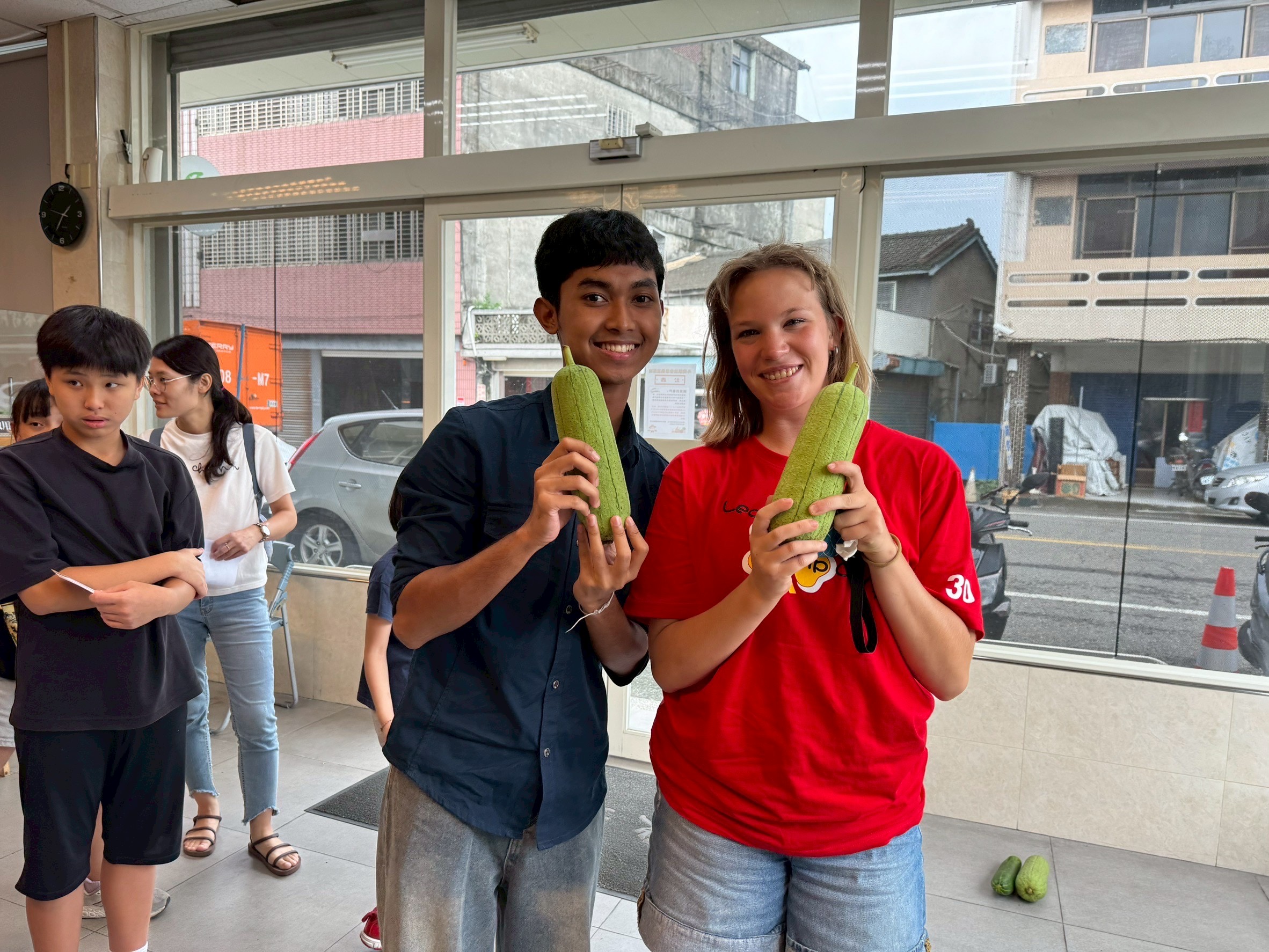 วันนี้เรามาที่ Wujie township เราได้ไปดูโรงงานข้าวของที่นี่จากนั้นเราก็ได้ไปดูมะระของที่นี่ซึ่งมีหลายพันธุ์มากอีกทั้งยังได้เห็นการแปรรูปมะระอีกด้วย ตอนบ่ายเราก็ได้ไปเรียนตีกลองของที่นี่ซึ่งบอกเลยว่าสนุกมาก เข้าใจง่ายและครูสอนยังเท่อีกด้วย😎 หลังจากนั้นเราก็ไปยังฟาร์มบวบแล้วก็ได้ไปพายเรือเก็บมาด้วย ต่อจากนั้นเราก็นำมาทำเป็นต้มบวบกับหอยกัน